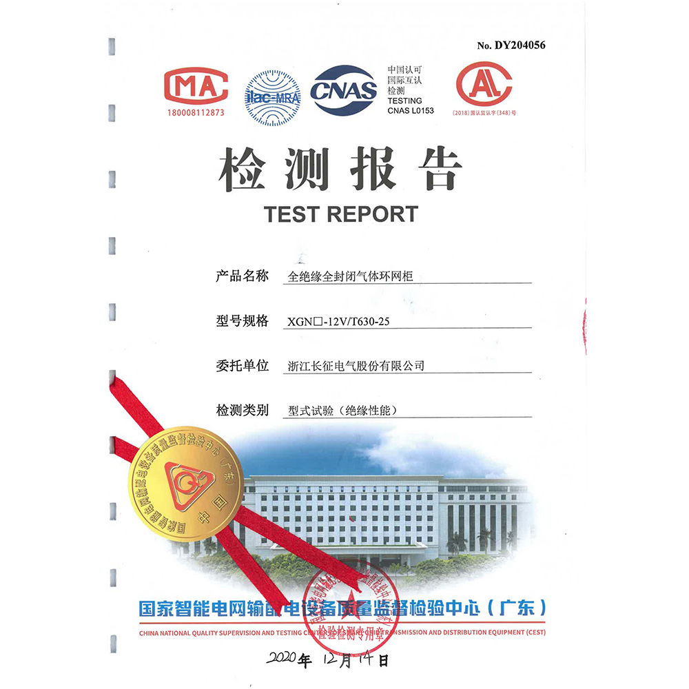 XGN□-12C/T630-25全绝缘全封闭气体环网柜 检测报告