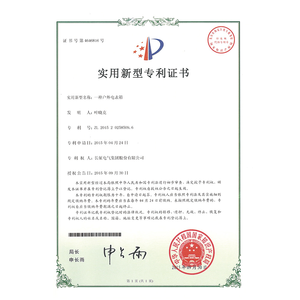 一种户外电表箱 实用新型专利证书