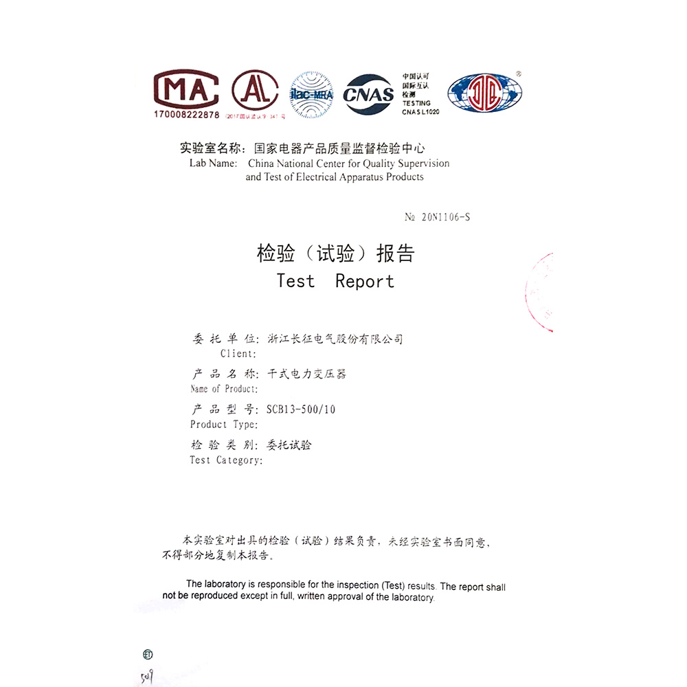 SCB13-500/10干式电力变压器 检验报告