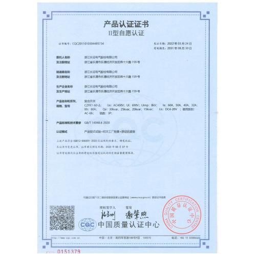 CZFK1-60-△复合开关 产品认证证书