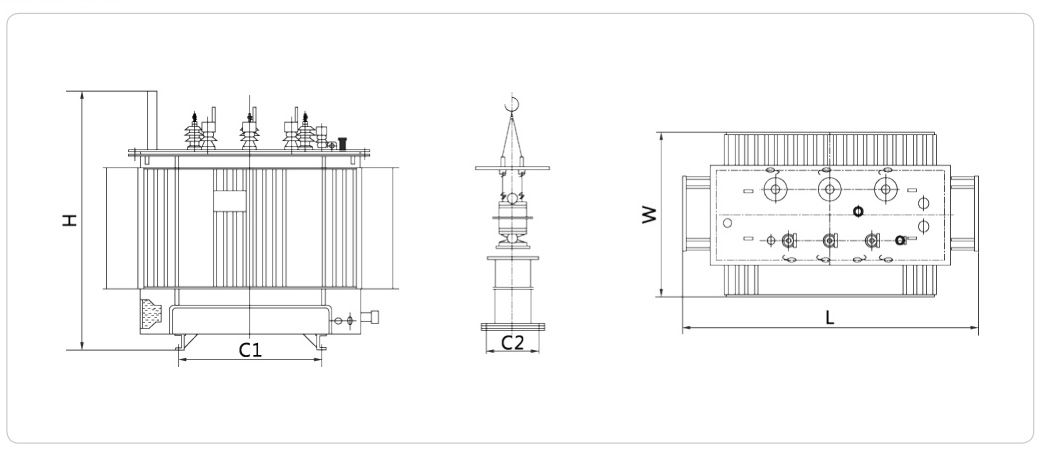 绕组采用瓦楞油道,不浸漆工艺,紧缩带绑扎。绕组均为同心式线圈,高压绕组具有对应分接电压要求的抽头,引至分接开关上,开关安装在箱盖上,且需切断电源后方可变换分接电压。