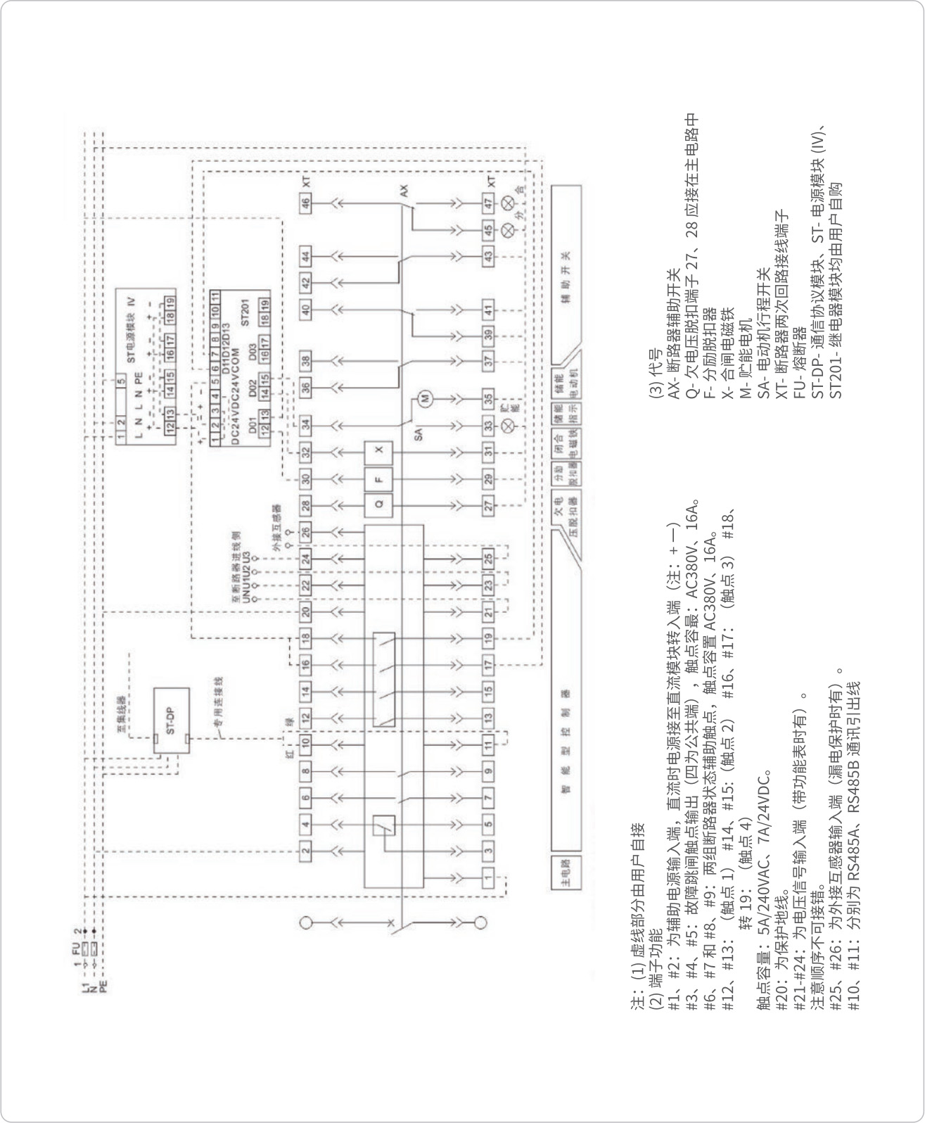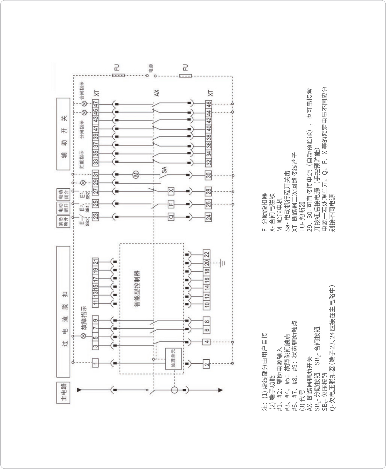 ◇ 配 2M、2H 智能控制器的断路器二次回路接线图(辅助开关由四组转换触头组成)